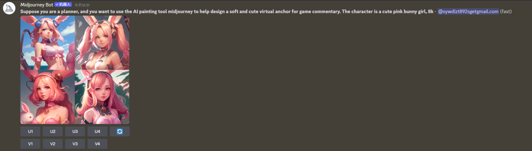 第二步,按照推荐的关键词填充内容来输入到midjourney中,生成对应的图片。